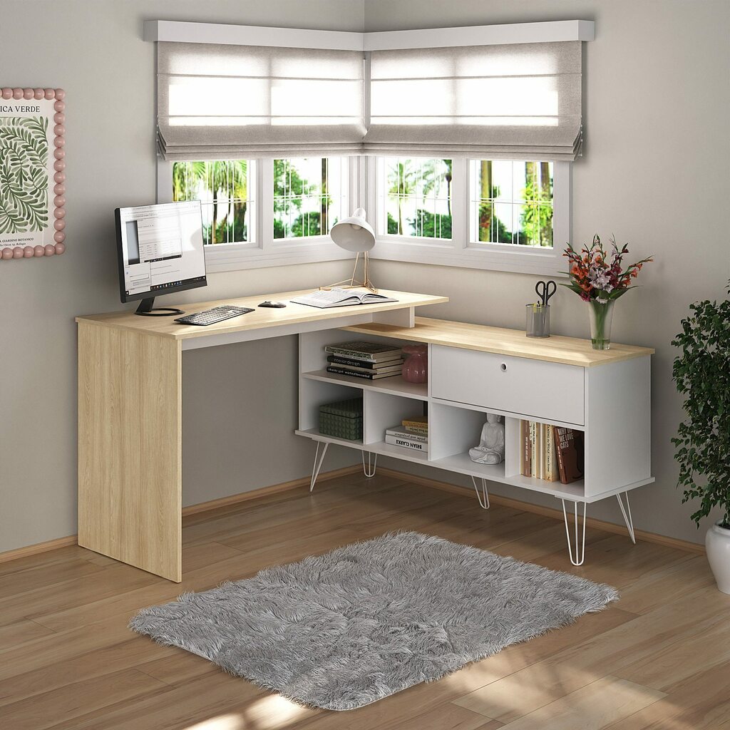 Torne seu ambiente mais bonito e produtivo com esta linda Escrivaninha em L, perfeita para tornar os momentos de trabalho ou estudo mais agradáveis!